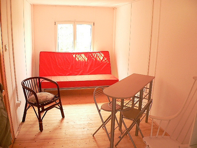 Eine kleine, feine Einrichtung. Der helle Holzboden gibt dem Raum eine besondere Athmosphäre. Hier könnte sich ein Künstler sehr wohlfühlen.