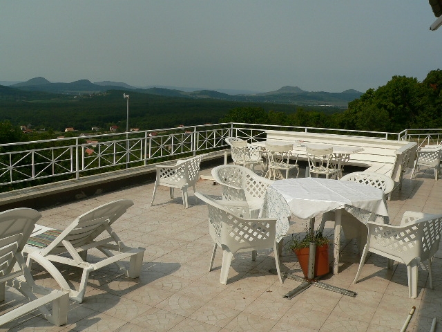 Die Sonnige Südterrasse befindet sich ein Stockwerk über dem Pool.