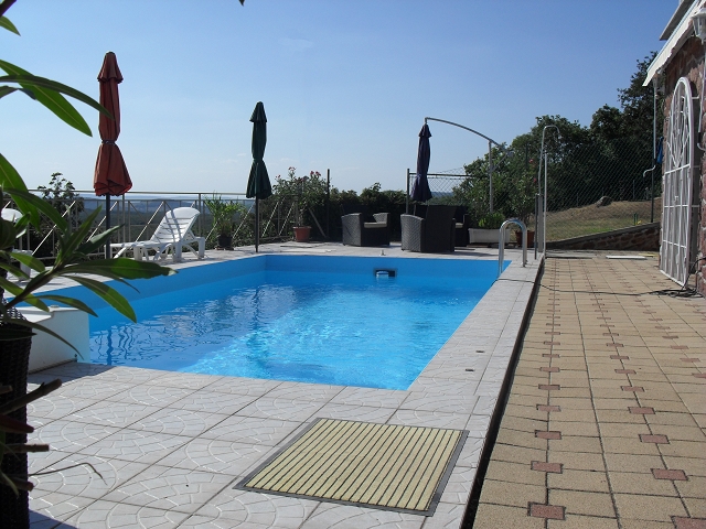 Selbst dann, wenn man im Pool schwimmt, hat man eine schöne Aussicht auf den Plattensee.