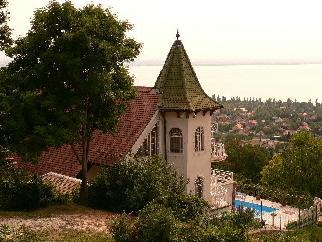Blick von der Terrasse auf die Johannesburg und den Plattensee.
